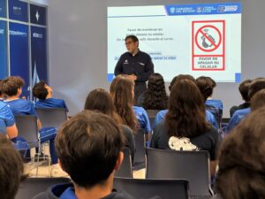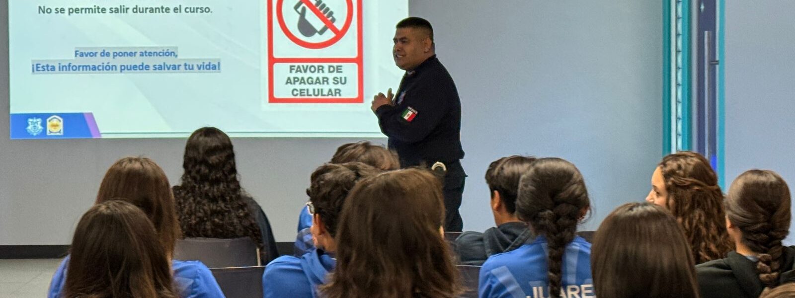 Chihuahua, Chih., En un esfuerzo por fomentar la responsabilidad y cultura vial entre los jóvenes, la Secretaría de Seguridad Pública del Estado (SSPE), impartió una plática informativa sobre el reglamento de Vialidad y Tránsito para el Estado de Chihuahua, dirigida a 190 estudiantes de secundaria del Tecnológico de Monterrey.