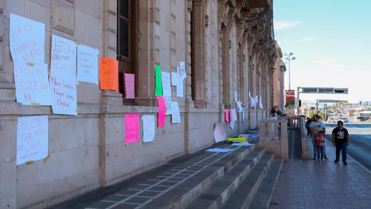 La mañana de este sábado se registraron diversas manifestaciones en la ciudad de Chihuahua, derivadas del homicidio del alcalde de Uruapan, Carlos Manzo, así como por reclamos de la Generación Z y protestas contra el cobro de “accesorios” en la revalidación vehicular. Tras las movilizaciones, varias pancartas quedaron colocadas en las rejas de Palacio de Gobierno.