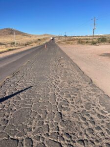 Chihuahua, Chih., La Secretaría de Infraestructura, Comunicaciones y Transportes (SICT) en Chihuahua, lleva a cabo trabajos de conservación periódica en 12 kilómetros de la carretera Janos-Agua Prieta.