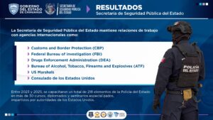 Chihuahua, Chih., La Secretaría de Seguridad Pública del Estado (SSPE) destacó la coordinación permanente que mantiene Chihuahua con autoridades de Estados Unidos como parte de las acciones para reforzar la seguridad en la franja fronteriza. Esta relación binacional ha permitido mejorar la operatividad policial y fortalecer el combate a la criminalidad en una región estratégica.