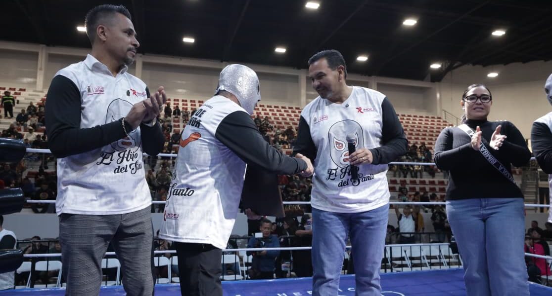 Antes de iniciar los encuentros el alcalde entregó al legendario luchador una placa de reconocimiento por su destacada trayectoria. Al leerla destacó que el Hijo del Santo es un referente indiscutible de la lucha libre nacional y agradeció que eligiera Ciudad Juárez como escenario para despedirse de su admirable carrera. El luchador se mostró emocionado al recordar que en esta arena vivió duelos memorables y agradeció el cariño de una afición que ha acompañado a varias generaciones. Señaló que para él es un honor cerrar este capítulo en una ciudad que considera especial. En el acto estuvo acompañado por el Hijo del Santo Jr, el director del Instituto Municipal del Deporte Juan Carlos Escalante Suárez y la regidora Karla Michaeel Escalante Ramírez.