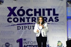 Ciudad Juárez, Chih.- La diputada local por el Partido Acción Nacional (PAN), Xóchitl Contreras, presentó su primer informe de actividades legislativas ante militantes, representantes políticos y sociales. En su intervención destacó los resultados de su labor en el Congreso y anunció nuevas propuestas orientadas a la seguridad y a la protección de las familias juarenses.