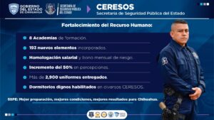 El fortalecimiento del sistema también incluyó la dignificación del personal penitenciario, con la incorporación de más de 190 nuevos custodios, la entrega de bono de riesgo y la dotación de más de 2 mil 900 uniformes. En cuanto a gobernabilidad, se logró reducir la sobrepoblación penitenciaria del 42 por ciento al 11 por ciento, mejorando las condiciones operativas en los CERESOS.