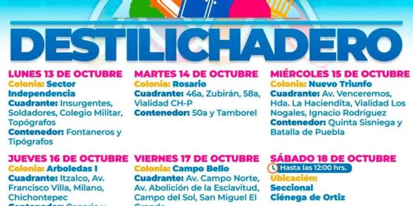 Con el objetivo de prevenir la acumulación de basura y la posible aparición de plagas, el Gobierno Municipal, a través de la Dirección de Servicios Públicos, llevará el programa ‘Destilichadero’ a seis colonias de la ciudad a partir de mañana…