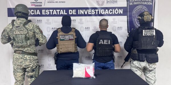 Juárez, Chih., Elementos de la Agencia Estatal de Investigación, adscritos al Centro de Operaciones Estratégicas, aseguraron 1.050 kilogramos de metanfetamina en la colonia Salvárcar de Ciudad Juárez. La acción se llevó a cabo en coordinación con el Ejército Mexicano y…