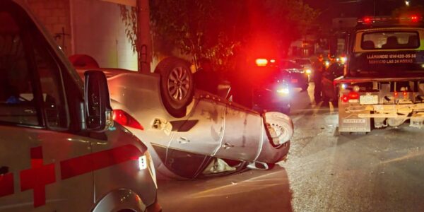 Conductor vuelca en Villas Nueva España tras perder el control del vehículo
