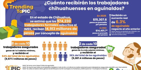 Aguinaldo promedio estimado supera los once mil pesos en Chihuahua