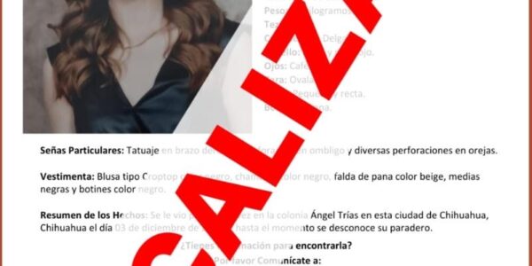 Chihuahua, Chih., La Fiscalía Especializada en Atención a Mujeres Víctimas del Delito por Razones de Género y a la Familia (FEM) informó que Helena D. A., de 18 años, fue localizada sana y salva en la ciudad de Chihuahua tras…