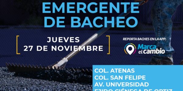 Ciudad de Chihuahua, Chih., El Gobierno Municipal, a través de la Dirección de Obras Públicas, realizará trabajos de bacheo este martes 25 de noviembre, mediante el programa emergente en calles de las colonias: Atenas y San Felipe, así como en…