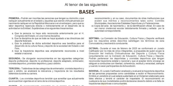 Chihuahua, Chih., En Reunión del Jurado Calificador del Reconocimiento al Mérito Deportivo edición 2025, se dieron a conocer los nombres de las personas que serán galardonadas en las diferentes categorías de la convocatoria. El Jurado encargado de analizar y evaluar…