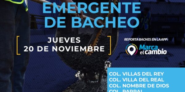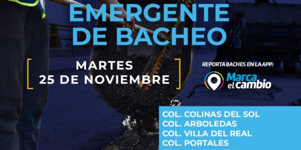 Ciudad de Chihuahua, Chih., El Gobierno Municipal, a través de la Dirección de Obras Públicas, realizará trabajos de bacheo este viernes 21 de noviembre, mediante el programa emergente en calles de la colonia Acequias de Tabalaopa así como en las…