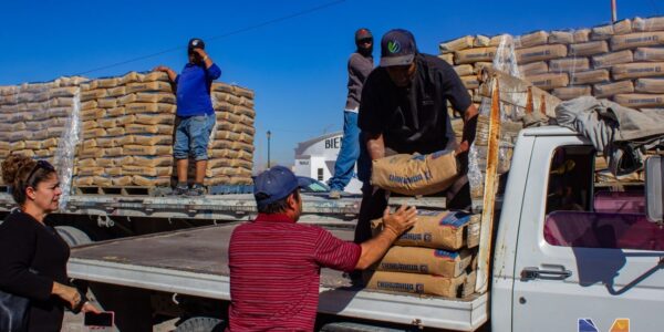 42 familias de Guadalupe Victoria en Meoqui reciben cemento subsidiado para mejorar sus viviendas