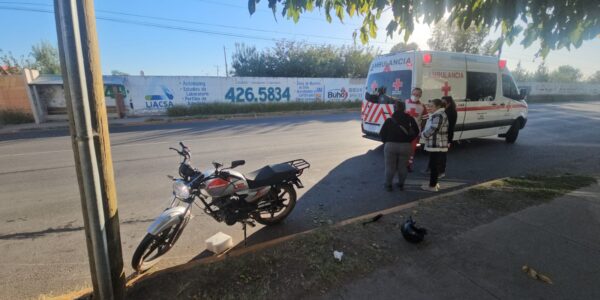 Chihuahua, Chih., Un hombre de aproximadamente 35 años resultó lesionado luego de que la motocicleta en la que circulaba fuera impactada por un vehículo Nissan March perteneciente a la empresa de seguridad Voga. El hecho ocurrió en el cruce de…