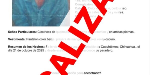 Cuauhtémoc, Chih., La Fiscalía de Distrito Zona Occidente localizó en buenas condiciones físicas y mentales a un menor de edad, quien había sido reportado por sus familiares como desaparecido desde el pasado 20 de octubre del 2025. Al ser localizado,…