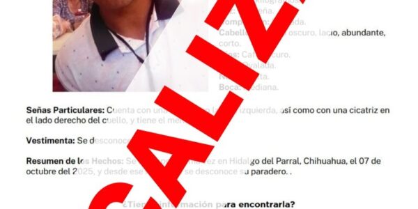 Hidalgo del Parral, Chih., Como resultado de la activación y seguimiento de los protocolos de búsqueda, este martes 18 de noviembre, la Fiscalía de Distrito Zona Sur localizó sano y salvo a Víctor Gonzalo T. M., de 25 años de…