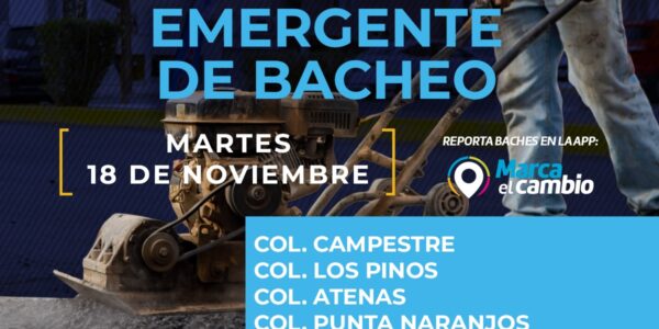 Ciudad de Chihuahua, Chih., El Gobierno Municipal, a través de la Dirección de Obras Públicas, realizará trabajos de bacheo este viernes 21 de noviembre, mediante el programa emergente en calles de la colonia Acequias de Tabalaopa así como en las…