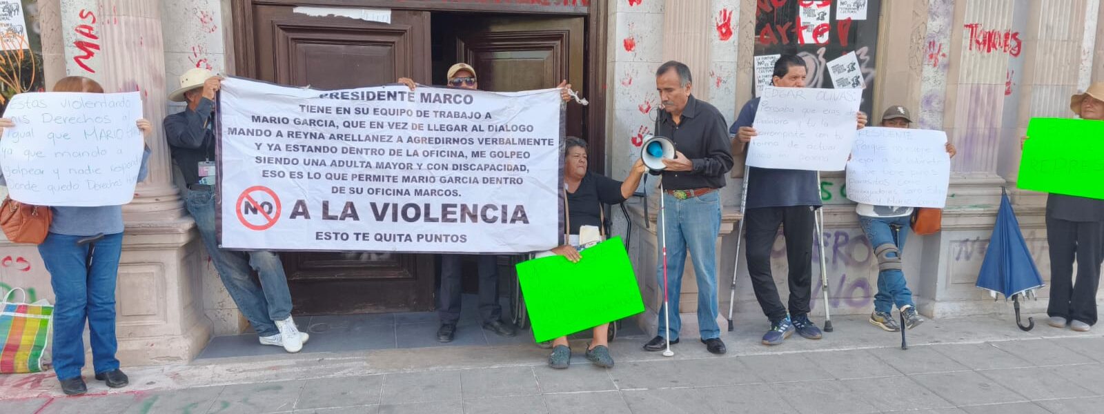 Vicky aseguró que el municipio no les apoya además de que los funcionarios como Mario García director de desarrollo humano y educación los llama narcos y que hasta se burla de lo que ellos exigen como un derecho, apoyos y pensión tanto por vejez como por discapacidad.